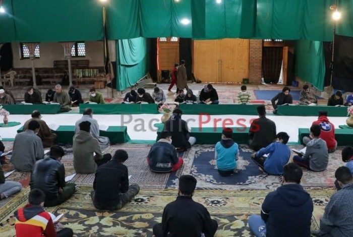 أفادت وكالة (pacific press agency) الناطقة باللغة الإنكليزية، بأنّ أتباع أهل البيت (عليهم السلام) في ولاية كشمير، أقاموا برامج عبادية ودينية خلال أيام شهر رمضان المبارك. المحفل القرآني، شهد حضوراً لافتاً، من الرجال وحتى الأطفال، الذين جلسوا في حلقة دائرية لتلاوة القرآن الكريم وقراءة الأذكار والأدعية الخاصة بشهر رمضان العظيم. وقالت الوكالة في تقرير مصوّر: إن “المسلمين الشيعة من أتباع أهل البيت الأطهار (عليهم السلام) في كشمير احتفلوا بشهر رمضان العظيم من خلال إقامة محافل تلاوة القرآن الكريم والبرامج العبادية الرمضانية”. وأضافت بأنّ “البرامج العبادية أقيمت في مسجد الإمام زاديبال بمنطقة سريناجار، وسط الالتزام بالإجراءات الوقائية من وباء كورونا”.